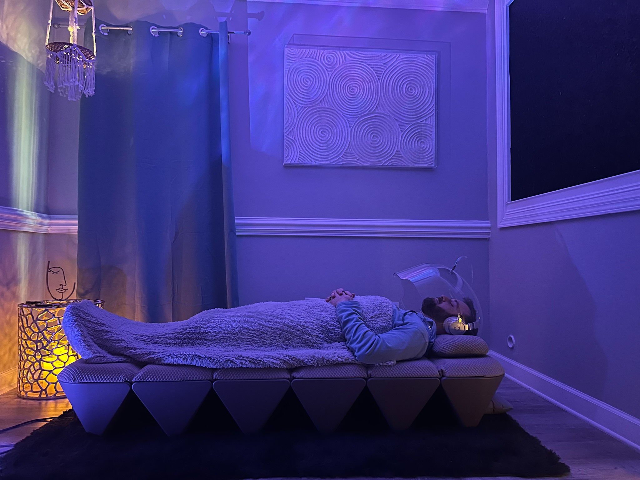 Our meditation sound bed uses vibroacoustic technology to deliver low-frequency vibrations throughout your body that quickly releases you out of stress.